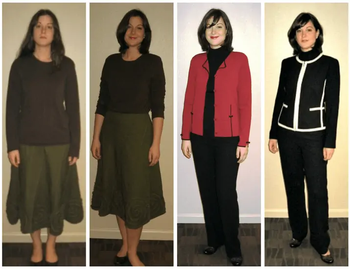 The two images on the left show BEFORE and the two on the right show AFTER. Wardrobe Makeover Image from NancyNixRice.com